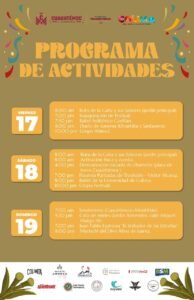 El sábado 18 continuará con activación física y zumba, una demostración de la escuela de charrería en la plaza de toros de Cuauhtémoc y la pasarela “Puntadas de Tradición” del diseñador Víctor Alcaraz. Por la noche se presentará el ballet de la Universidad de Colima y el espectáculo musical del Grupo Festivall.